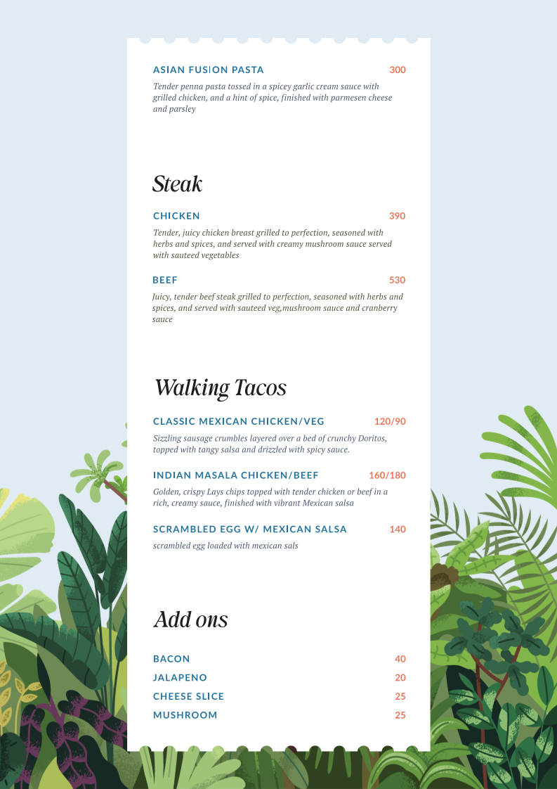 On the menu, you’ll find dishes like tender grilled steaks served with savory mushroom and cranberry sauces—ideal for those looking for a satisfying, well-seasoned meal. For something on the sweeter side, the waffles stand out with creative toppings such as crushed Oreos, Lotus Biscoff spread, or hazelnut, paired with a scoop of ice cream to add a creamy finish.