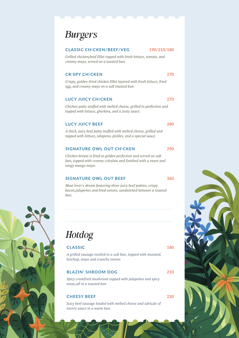 Owl Out Cafe Menu
